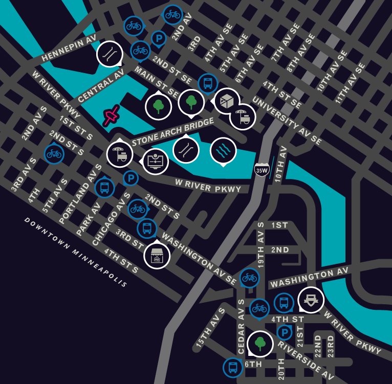 Minneapolis Riverfront Central Avenue and Stone Arch Bridge.