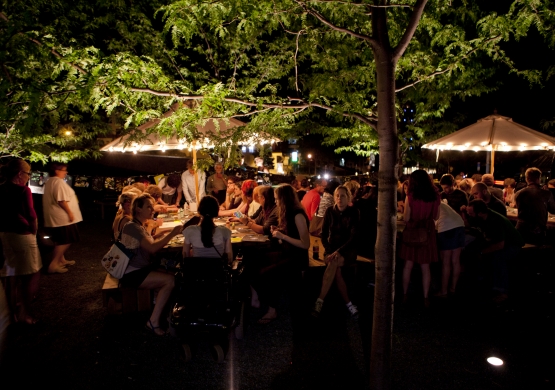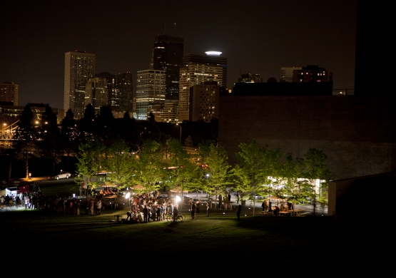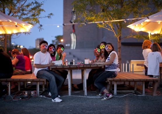Join in making collaborative drawings under the twinkling lights of the Open Field Grove. Think glowsticks and blacklights for this nocturnal round of social art making.
