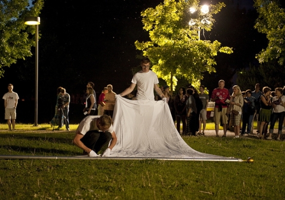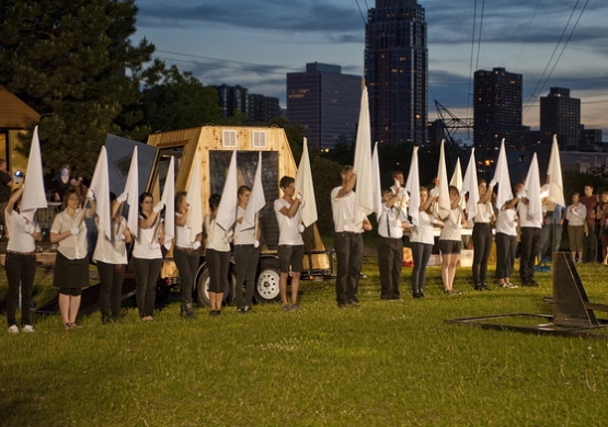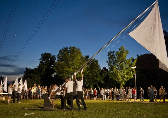 Empty Words includes spoken word, live musical performances of Vexations by Erik Satie, projections, art objects, and other actions. This dusk ’til dawn collective contemplation of surrender represents an opening up to a hopeful future–a spontaneous blend of community festival and theatrical performance tempered by an attitude of thoughtful expectation, transforming darkness into light and words into music. Empty Words aims to celebrate these ideas, “so that we can do our living…”