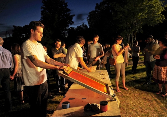 Polish-born, U.S.-based multimedia artist Piotr Szyhalski has in the past decade established the Labor Camp—an ongoing art project that includes interactive components (digital and physical), original music, performances, videos, printed ephemera, texts, a blog, and an archive of online resources. Moving between fine arts (painting, photography, drawing, installation), sound, media art, and design, Szyhalski’s multi-layered works often explore communication/exchange, extreme historical phenomena, and relationships between the individual and society/history/time.