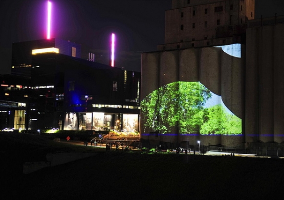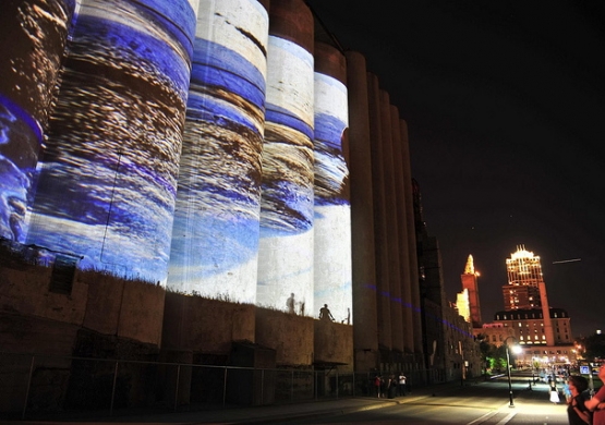 The audience will be able to participate via a web site that will be accessible at a computer station on the north end of the walking bridge and on hand held devices. The web site will allow participants to select photographic images for large scale image projection onto the Gold Medal Flour building on the opposite shore from the computer station. The projection site is visible from the computer station and many other points in the city as well as from anywhere along the Stone Arch Bridge. The library will include natural and industrial imagery, both abstract and descriptive that I have photographed along the Mississippi River and its environs.