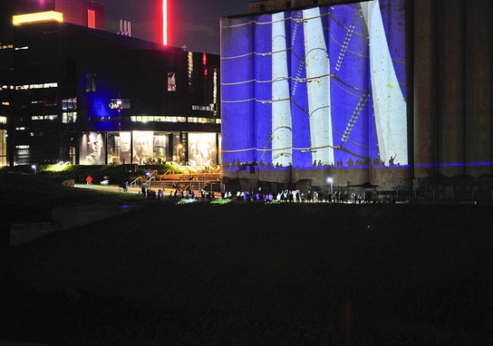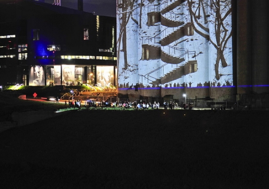 MURMUR explores this relationship, awareness and tension. MURMUR creates an exchange across the divide. MURMUR is a participatory artwork; an outdoor projection experience that is queued by audience on the opposite shore. Using the Stone Arch Bridge as a conduit, the public will be able to make an action on the north end of the bridge that creates an observable result on the south end of the bridge.