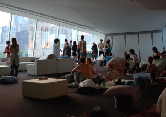 The Lullaby Experiment (for 35 sleepers, 10 attendants, 4 singers, and solo viewers) invites people to sleep at the Walker Art Center to experience giving up their daytime selves and being sung to lovingly throughout their nightlong stay. Participants bring their sleeping gear and supplies to create personal comfort within this rare opportunity to explore the museum, the public night, and the soft mystery of slumber. This work of participatory art is gentle and creative misbehavior with fellow sleepers where sleeping does not belong. Within a live pianissimo concert of love, The Lullaby Experiment is a struggle for peace and rest, a remembrance of affection, and a succumbing to one’s inner nature.