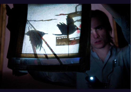 Suitcases, backpacks, purses, and bicycle trailers will all be hollowed out and modified to house mini projectors which will project scenes